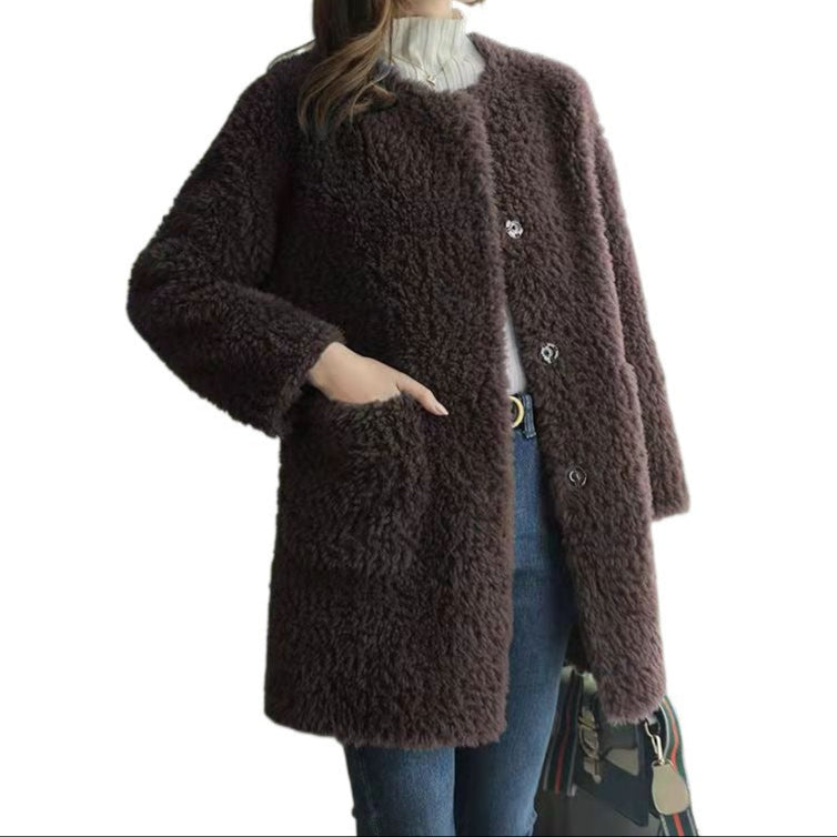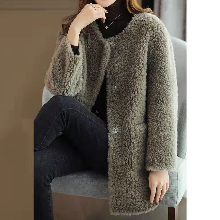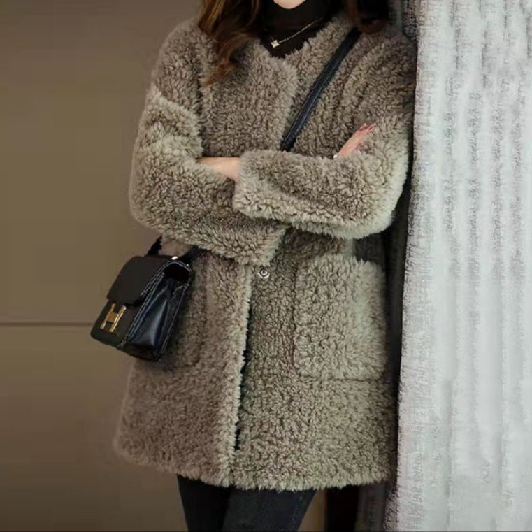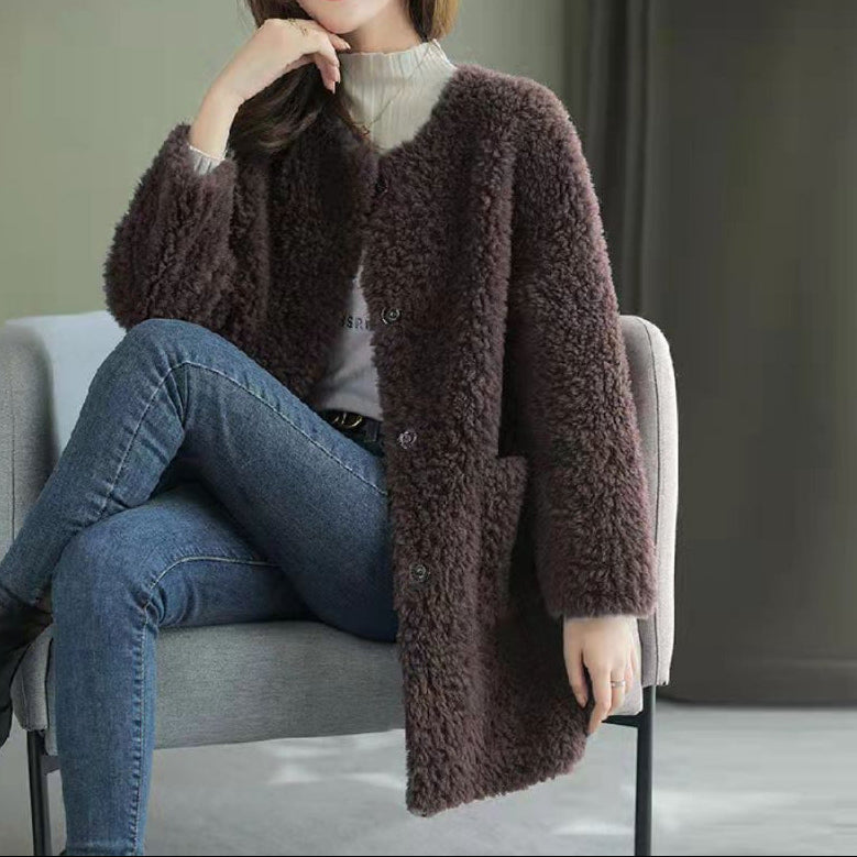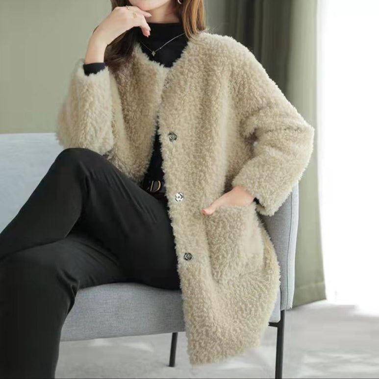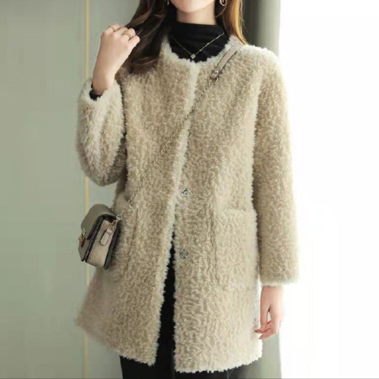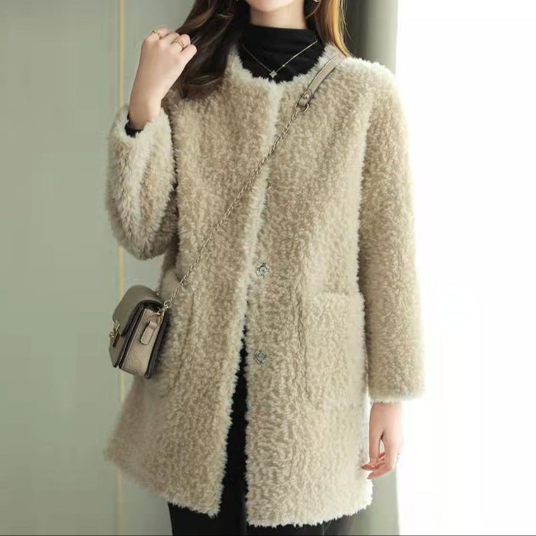 Noémie – Mid-Length Lamb Wool Coat (Plus Size)