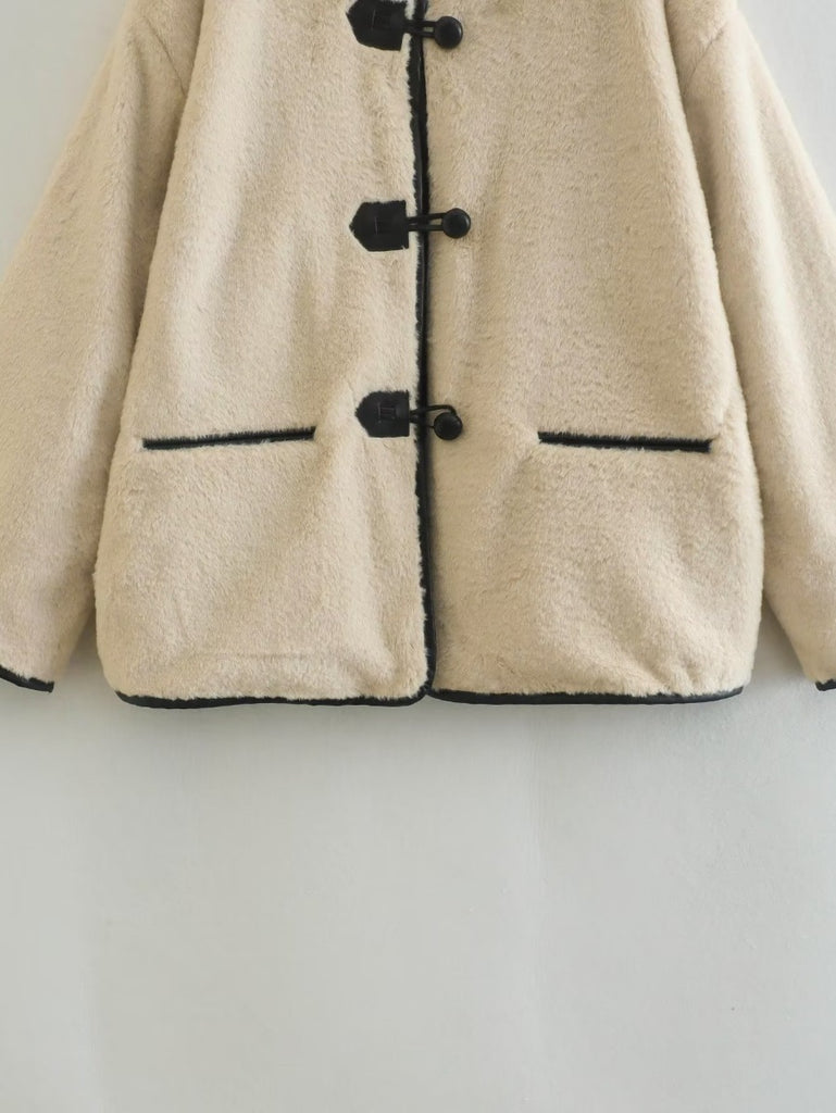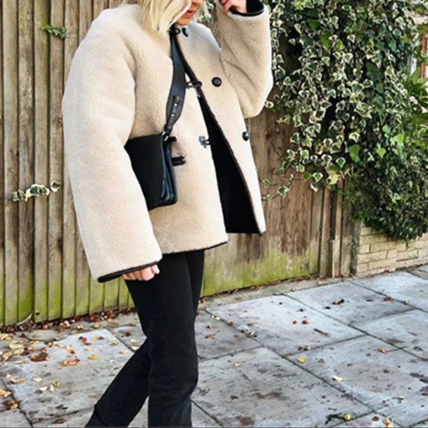 Ninette is your cozy essential for chilly days — a cotton-padded A-line coat wrapped in ultra-soft lamb wool texture. With a single-breasted button-down front and a flattering feminine silhouette, it's the perfect fusion of warmth and effortless style. Ideal for layering, strolling the city, or warming up your winter wardrobe with charm.