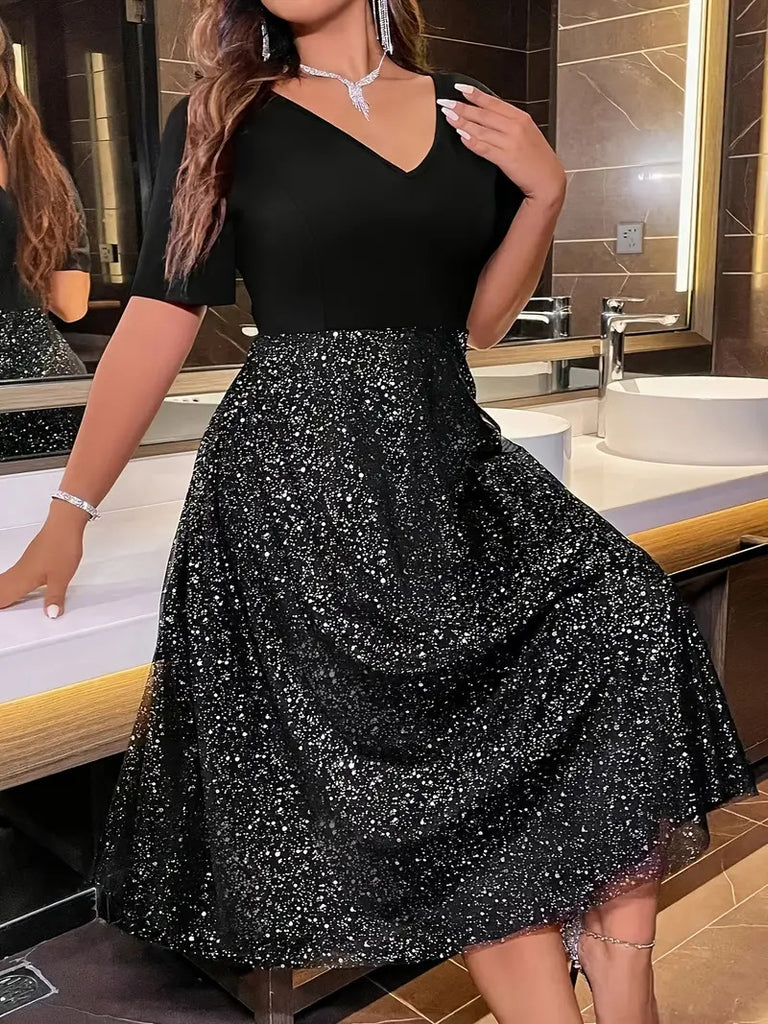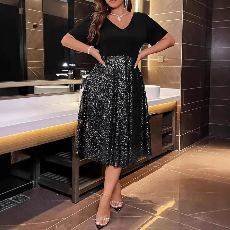 Thea is your new go-to dress for effortless elegance. Featuring a flattering V-neckline, playful polka dot print, and sheer voile accents, this A-line silhouette perfectly complements curves with sophisticated charm. Available in plus sizes.