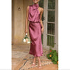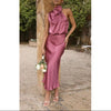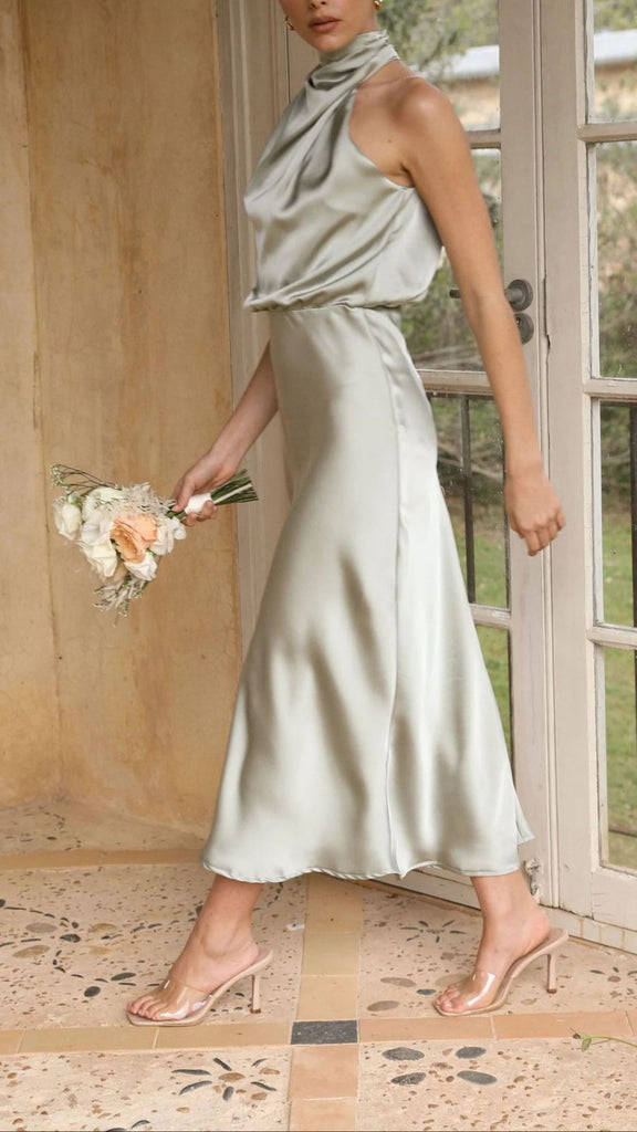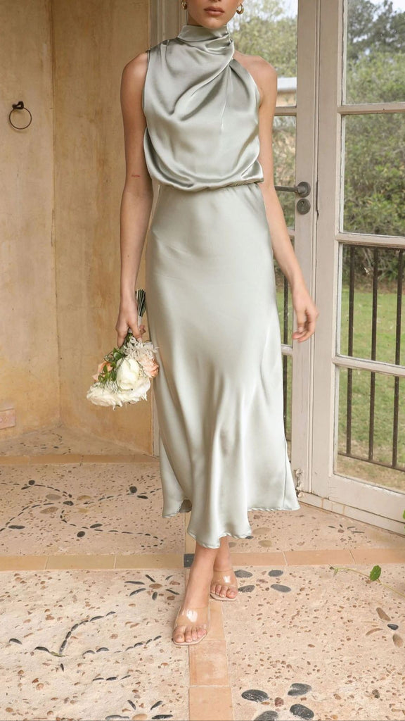 Sienna is a sleeveless halter-neck dress designed to flatter the silhouette with a high waist and flowing long-line shape. Its lightweight polyester fabric offers comfort and movement, while the subtle zipper detail adds modern edge. Ideal for summer evenings, weddings, or effortless daytime chic.
